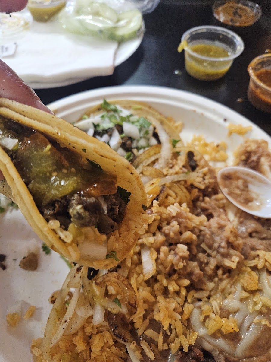 Craving tacos, make sure to go to this place! They also have a lot of specials every day. For this plate I ordered 3 tacos and it came with rice and beans.