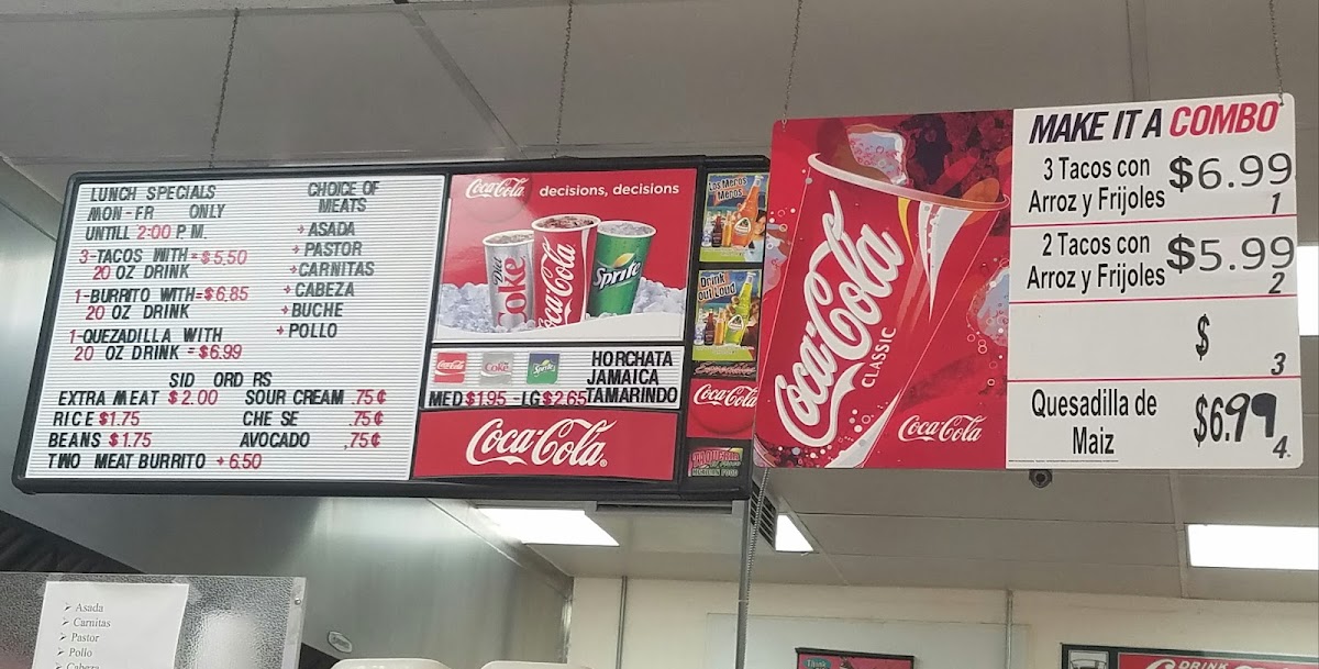 The menu is crafted for those looking to enjoy familiar, comforting flavors whether stopping by for a quick bite or settling in for a relaxed meal. Items like the Asada Torta or Tacos with rice and beans provide a satisfying balance for lunchtime or early dinner, while traditional drinks such as Horchata and refreshing sodas complement the flavors without overwhelming them.